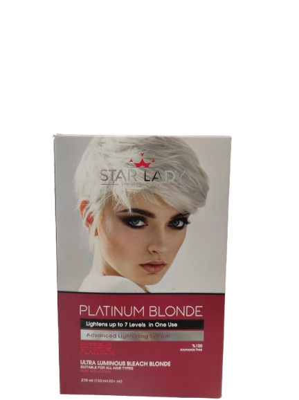 پلاتینیوم بلوندر استارلیدی، با قدرت روشن کنندگی بالای خود می تواند موها را تنها در ۱ مرحله تا ۷ پایه روشن نماید. به عبارتی کرم پلاتینه استار لیدی موهای طبیعی را طی یک مرحله از رنگ طبیعی به رنگ پلاتینه روشن تبدیل می نماید. پلاتینوم بلوندر استارلیدی بدون جا گذاشتن رنگ زردی در بافت مو، موها را به پایه دکلره بسیار روشن رسانده و رنگ زیبا و جذابی را بدون آسیب رسانی به بافت مو و از بین بردن شادابی آنها بر روی موهای فرد ایجاد می کند. همچنین کرم پلاتینه استار لیدی فاقد آمونیاک بوده و در نتیجه فاقد عوارض جانبی همانند حساسیت و سوزش میباشد. این محصول دارای بافت روغنی می باشد تا از آسیب دیدگی موها جلوگیری کند.