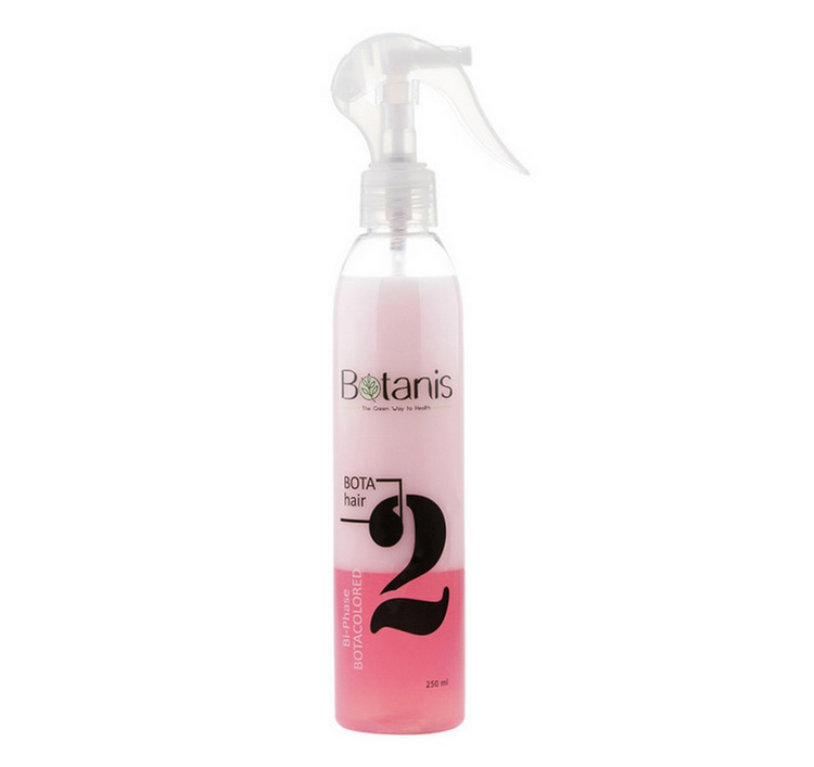 اسپری دو فاز موی رنگ شده بوتانیس از تارهای مو در برابر عوامل مخرب محیطی همچون حرارت محافظت میکند. این محصول حاوی کراتین هیدرولیز شده و عصاره انار است. کراتین هیدرولیز شده از مو در برابر آلودگی و آسیب محافظت نموده و به تقویت مو میپردازد. همچنین این ماده ضخامت مو را افزایش میدهد، قابلیت ارتجاعی تارهای مو را بیشترکرده و درخشندگی را به مو باز میگرداند. عصاره انار موجود در این محصول نیز فولیکولهای مو را تقویت میکند، وزی مو را کاهش داده و موجب نرمی و لطافت تارهای مو میشود. افزایش درخشش، تثبیت رنگ مو، تقویت موی سر، ترمیم بافت آسیب دیده و افزایش ماندگاری رنگ مو از جمله مزایای استفاده از اسپری دو فاز مناسب مو رنگ شده بوتانیس است.
