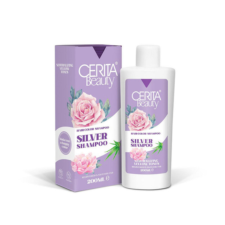 شامپو رنگساژ سریتا مدل Silver جهت از بین بردن زردی نامطلوب مو پس از دکلره یا رنگ کردن مو است که به شما در داشتن موهایی با پایه مناسب جهت انجام رنگ بلوند کمک میکند. پس از انجام دکلره ممکن است موها دچار زردی شوند و یا حتی ممکن است بعد از رنگ کردن، موهای دچار زردی شوند. از این رو استفاده از این محصول توصیه میشود تا زردی موها از بین رفته و به خوشرنگ شدن تارهای مو کمک نماید. در ترکیبات این شامپو سریتا از اسیدهای آمینه و عصاره آلوئه ورا نیز استفاده شده است. اسیدهای آمینه موجود در این محصول ضمن تقویت ریشه و تارهای مو و افزایش رطوبت رسانی از ایجاد آسیبهای محیطی به آنها جلوگیری به عمل میآورد. عصاره آلوئه ورا موجب نرمی و شفافیت و شانه پذیری راحت موها شده و علاوه بر آن دارای خواص آنتی اکسیدانی و ضد التهابی نیز است. آلوئه ورا همچنین سبب کاهش قرمزی، خارش و جوش بر روی پوست سر میگردد. رنگ مو بعد از مدتی دچار کدر شدن میشود و درخشندگی اولیه خود را از دست میدهد. رنگساژ کردن مو باعث میشود تا رنگ مو احیا شود و درخشندگی لازم را به دست آورد. این شامپو برای استفاده روزانه مناسب نیست و با شامپوی سر که به صورت روزانه استفاده میکنید تفاوت دارد.