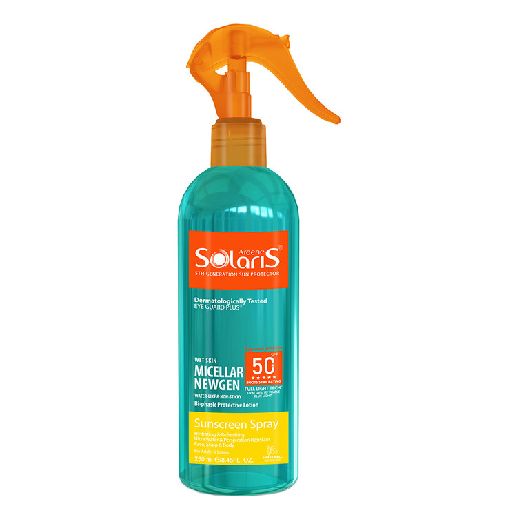محافظت از پوست در همهی فصول به خصوص در تابستان امری ضروری است. ضد آفتابها یکی از ضروری ترین ترکیبات مراقبت از پوست به شمار میروند. ضدآفتابها پوست ما را در برابر اشعهی مضر خورشید محافظت کرده و خطر ابتلا به سرطان را کاهش میدهند. اشعهی خورشید از دو پرتو متفاوت تشکیل شده است که UVB و UVA نام دارند. UVB عامل اصلی آفتاب سوختگی و برنزه شدن پوست و گاها پیدایش خالهای قهوه ای روی صورت و دستها، ایجاد لک و تغییر رنگ پوست است و UVA کلاژن پوست را تخریب میکند و به لایههای عمیقتر نفوذ میکند. لوسیون ضد آفتاب دو فاز آردن سولاریس به شکل واترژل بوده و بی رنگ و سبک است. این ضد آفتاب چربی اضافه روی پوست ایجاد نکرده و مات کننده پوست است. یکی از مزیتهای خرید لوسیون ضد آفتاب دو فاز آردن قابلیت استفاده بر روی پوست مرطوب بوده که از میزان محافظت آن کم نمیشود. بنابراین هنگام شنا یا حمام آفتاب بسیار کاربردی بوده و باعث ایجاد شوزش یا عرق سوز شدن نخواهد شد. خرید لوسیون ضد آفتاب دو فاز سولاریس بسیار به صرفه بوده زیرا این محصول قابل استفاده برای دور چشم است و هیچ گونه آلرژی یا سوزش ایجاد نخواهد کرد. این محصول آبرسان قوی پوست بوده و با قابلیت جذب سریع هیچ گونه حس سنگینی و چربی روی پوست نخواهد داشت و غیر کمدونزا است.