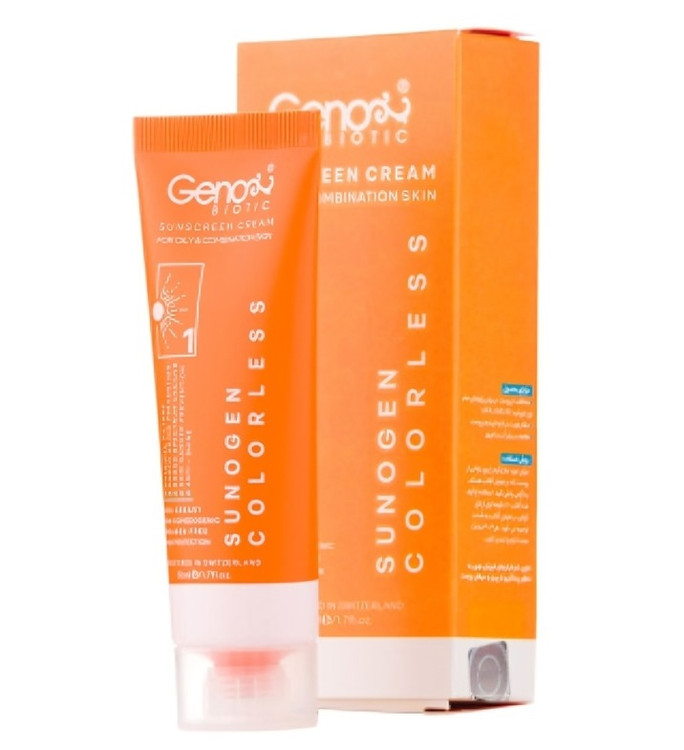 کرم ضدآفتاب بی رنگ ژنو بایوتیک پوست چرب و مختلط SPF50 حجم 50 میلی لیتر
