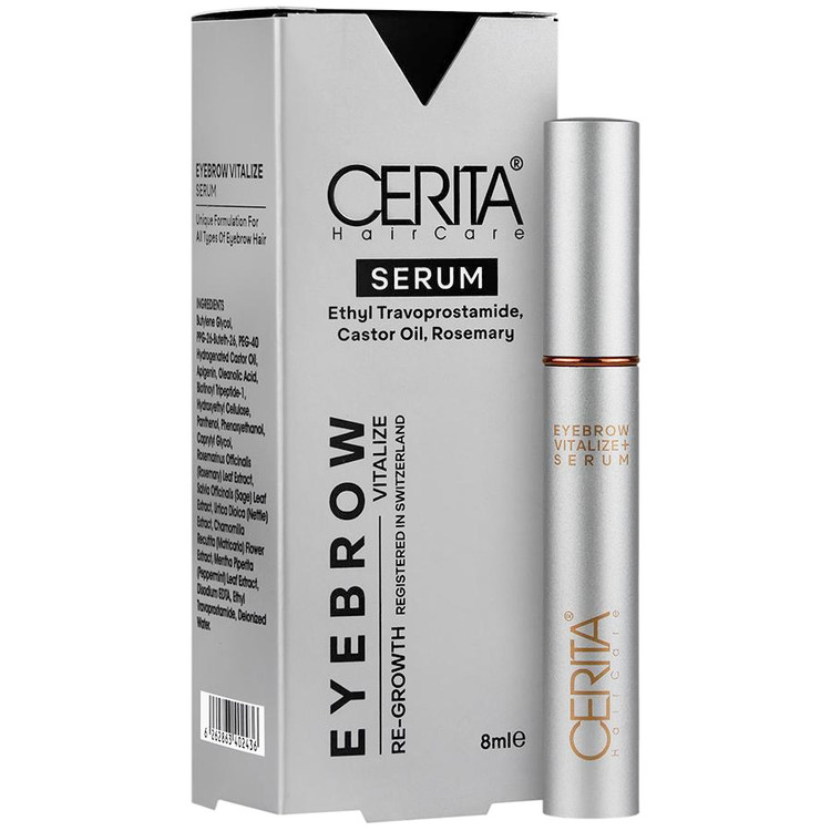 سرم ابروی سریتا، یکی از بهترین محرکهای رشد ابرو و تقویت آن است. این سرم از ترکیبات موثری مانند بیماتوپراست، عصاره رزماری و روغن کرچک در راستای افزایش استحکام و ضخامت تارهای ابرو بهره گرفته است. عصاره رزماری و روغن کرچک همچنین در بهبود خونرسانی به ریشه ابرو نقش اثرگذاری دارند و به همراه ماده بیماتوپراست به رویش مجدد تارهای ابرو کمک می کنند.