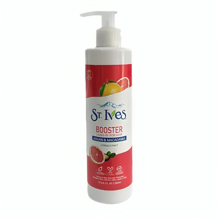 ماسک مو بدون آبکشی اس تی ایوز، این محصول ماسک مو فری سولفات و پارابن از برند ST.Ives در سری بوستر (تقویت کننده) بوده که از روغن آرگان و ماکادمیا استفاده شده است. ماسک مو بعد از حمام سنت ایوز در سری بوستر با دارا بودن روغن آرگان باعث شده که برای مو و پوست سر بسیار مفید باشد و خاصیت نرم کنندگی بالایی ایجاد کند. این ماسک مو میتواند نقش مرطوب کننده پوست برای مقابله با شوره و خشکی پوست سر را داشته باشد. همچنین، این محصول مناسب برای موهای نازک و شکننده میباشد و قادر به برطرف کردن آسیبهای ناشی از درمانهای شیمیایی و رنگها است. درمان مو خوره از دیگر معجزههای ماسک مو، فری سولفات و پارابن برند سنت ایوز تلقی میشود. همچنین، با توجه به وجود روغن ماکادمیا در این ماسک مو یک لایه اضافه روی مو ایجاد شده و قابلیت شانه پذیری آن را افزایش داده و در عین حال مانع شکسته شدن مو در حین استفاده از دستگاههای حرارتی میشود. ماکادمیا سرشار از ویتامینها، پروتئینها و مواد معدنی میباشد و دارای خواص ترمیمی، مغذی و مرطوب کنندگی است که به دلیل وجود این نوع ترکیبات از جمله بهترین روغنهای گیاهی شناخته شده که در این محصول استفاده شده است.