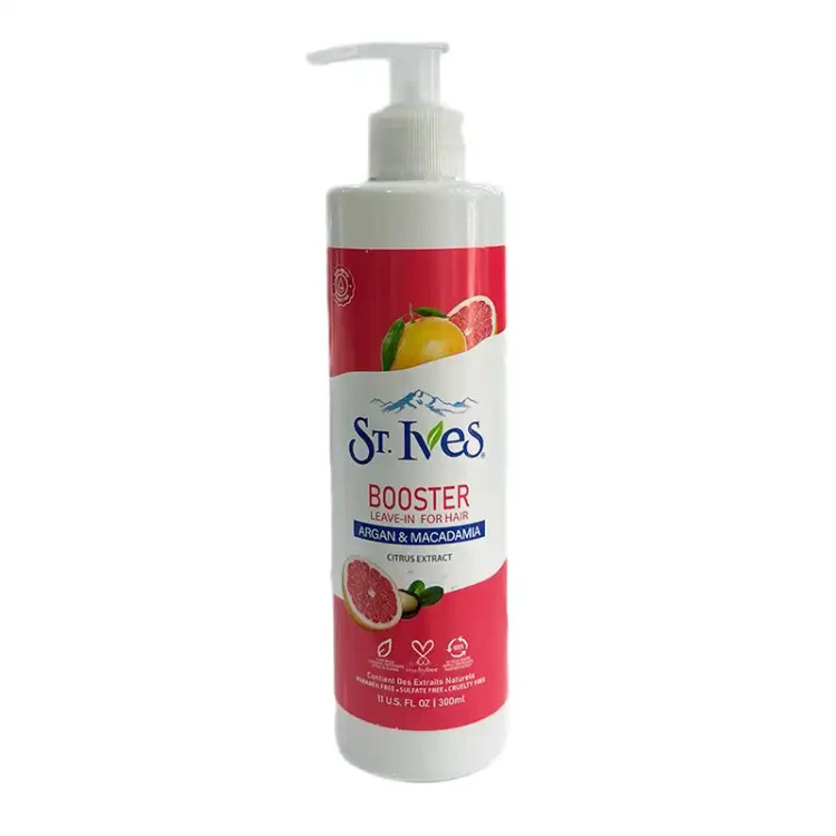 ماسک مو بدون آبکشی اس تی ایوز، این محصول ماسک مو فری سولفات و پارابن از برند ST.Ives در سری بوستر (تقویت کننده) بوده که از روغن آرگان و ماکادمیا استفاده شده است. ماسک مو بعد از حمام سنت ایوز در سری بوستر با دارا بودن روغن آرگان باعث شده که برای مو و پوست سر بسیار مفید باشد و خاصیت نرم کنندگی بالایی ایجاد کند. این ماسک مو میتواند نقش مرطوب کننده پوست برای مقابله با شوره و خشکی پوست سر را داشته باشد. همچنین، این محصول مناسب برای موهای نازک و شکننده میباشد و قادر به برطرف کردن آسیبهای ناشی از درمانهای شیمیایی و رنگها است. درمان مو خوره از دیگر معجزههای ماسک مو، فری سولفات و پارابن برند سنت ایوز تلقی میشود. همچنین، با توجه به وجود روغن ماکادمیا در این ماسک مو یک لایه اضافه روی مو ایجاد شده و قابلیت شانه پذیری آن را افزایش داده و در عین حال مانع شکسته شدن مو در حین استفاده از دستگاههای حرارتی میشود. ماکادمیا سرشار از ویتامینها، پروتئینها و مواد معدنی میباشد و دارای خواص ترمیمی، مغذی و مرطوب کنندگی است که به دلیل وجود این نوع ترکیبات از جمله بهترین روغنهای گیاهی شناخته شده که در این محصول استفاده شده است.